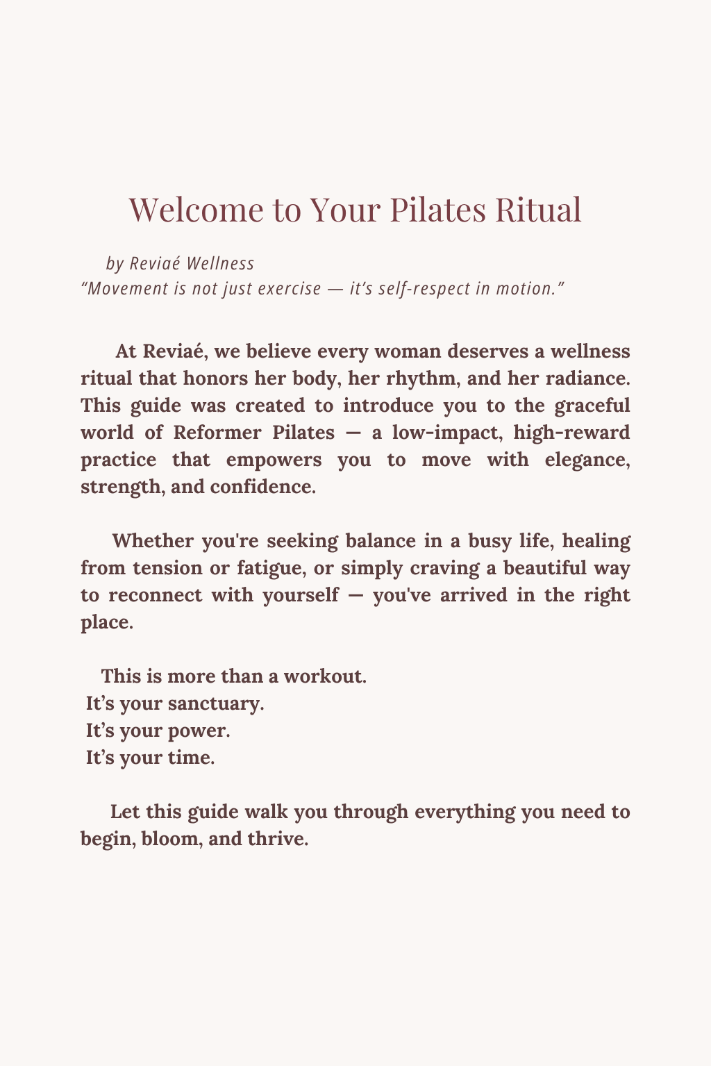 At Reviaé, we believe every woman deserves a wellness ritual that honors her body, her rhythm, and her radiance. This guide was created to introduce you to the graceful world of Reformer Pilates — a low-impact, high-reward practice that empowers you to move with elegance, strength, and confidence.